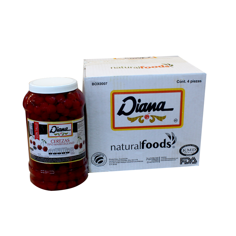 Sé el primero en valorar “Cereza Diana con Tallo Galón Frasco de 4KG/2kg masa drenada”